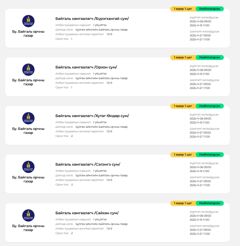 БАЙГАЛЬ ОРЧНЫ ГАЗРЫН 2025 ОНЫ АЛБАН ХААГЧДЫН ТОМИЛГОО, ШИЛЖИН АЖИЛЛАСАН МЭДЭЭЛЭЛ
