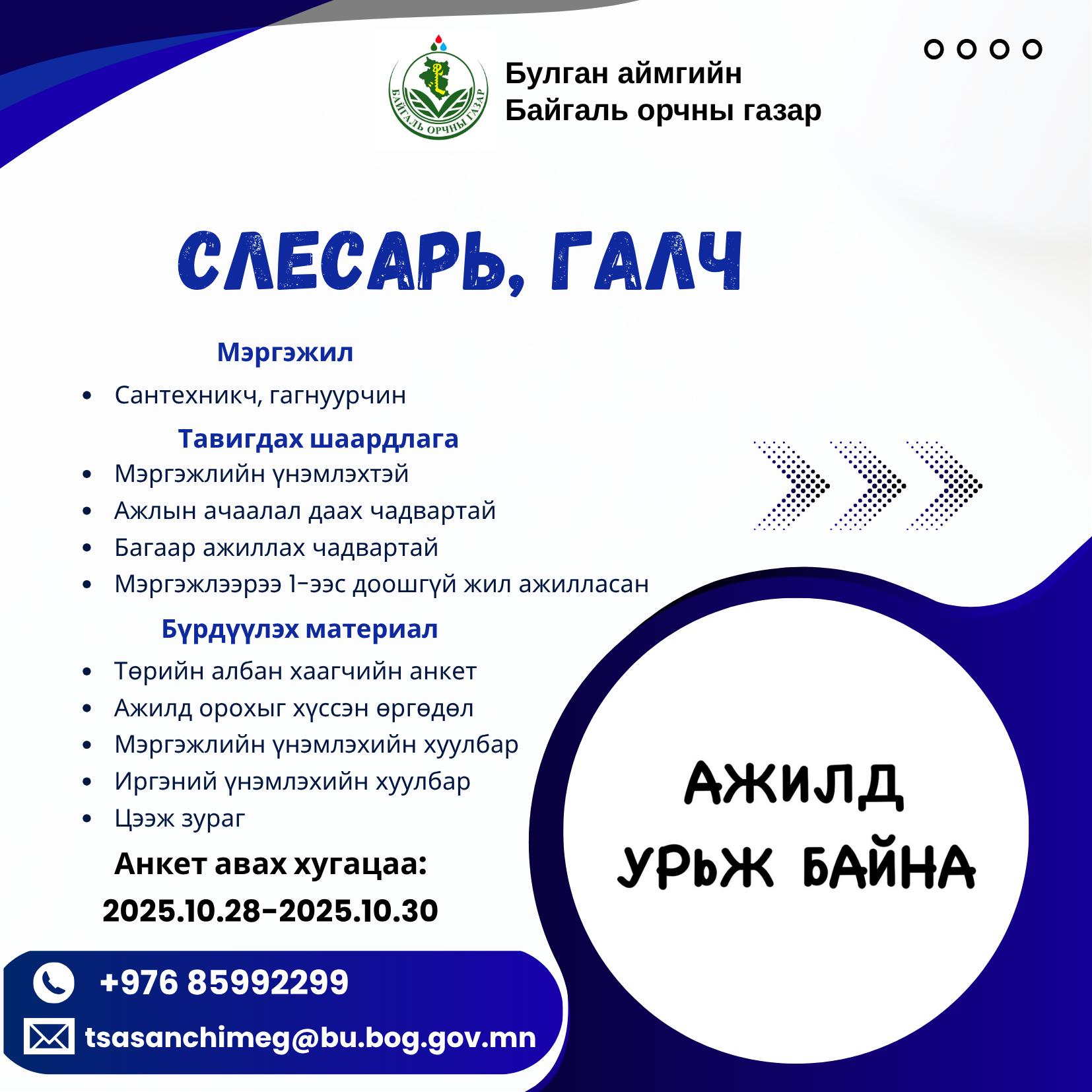 Бүрэгхангай, Орхон, Хутаг-Өндөр, Сэлэнгэ, Сайхан сумдад Байгаль хамгаалагчийн сул орон тоог нөхөх тусгай шалгалт зарлагдлаа.