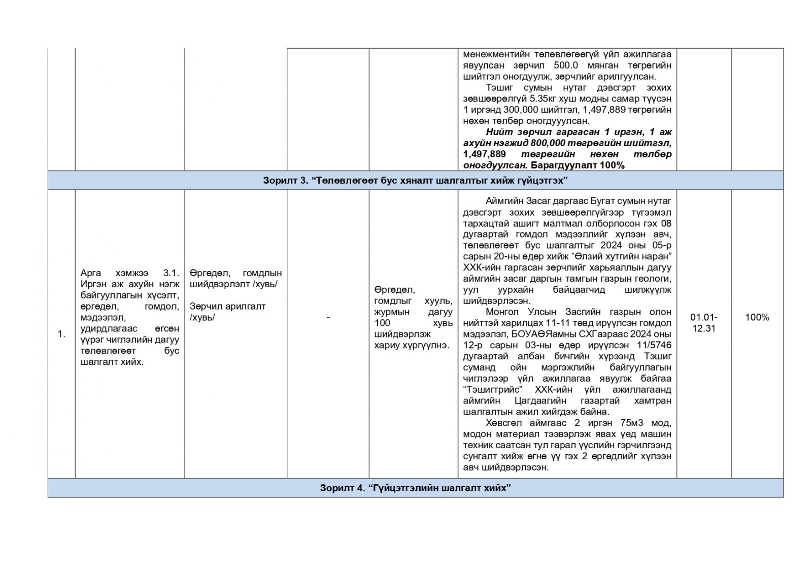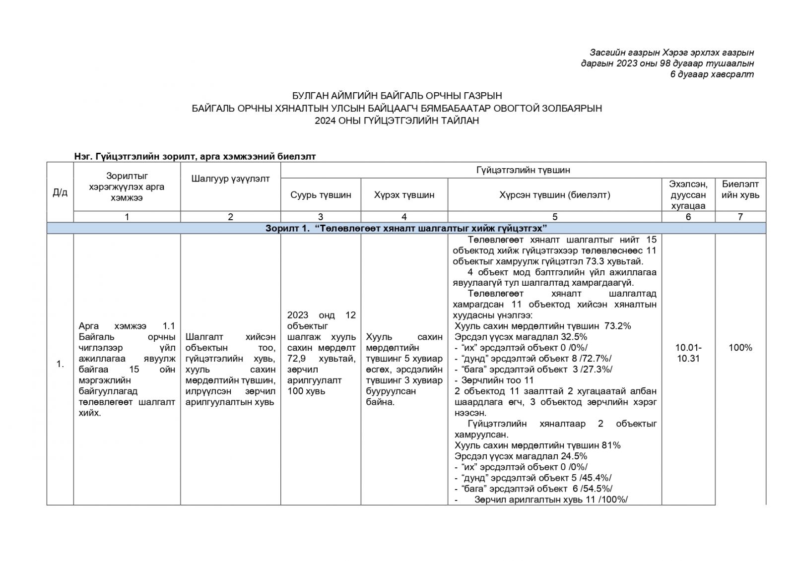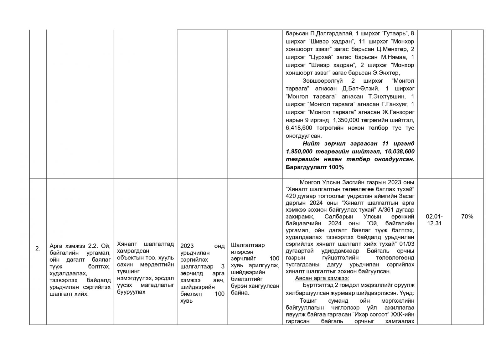 Байгаль орчны хяналтын улсын байцаагч Б.Золбаярын 2024 оны гүйцэтгэлийн тайлан