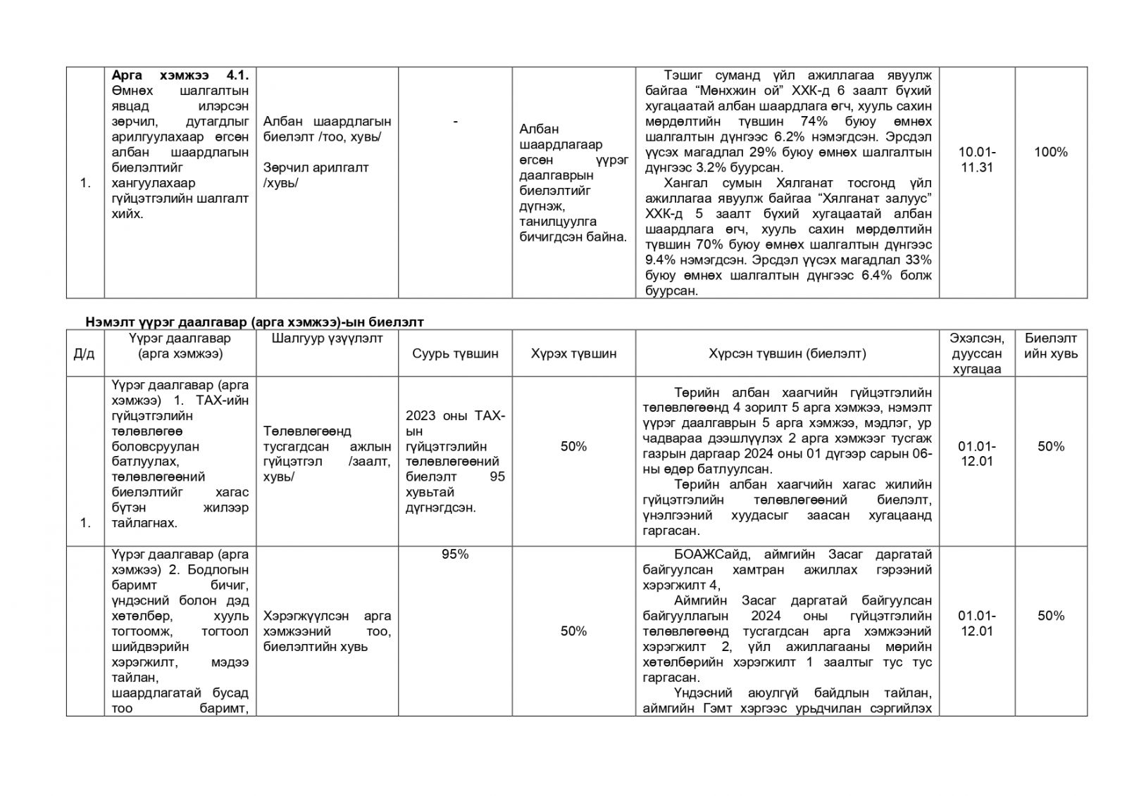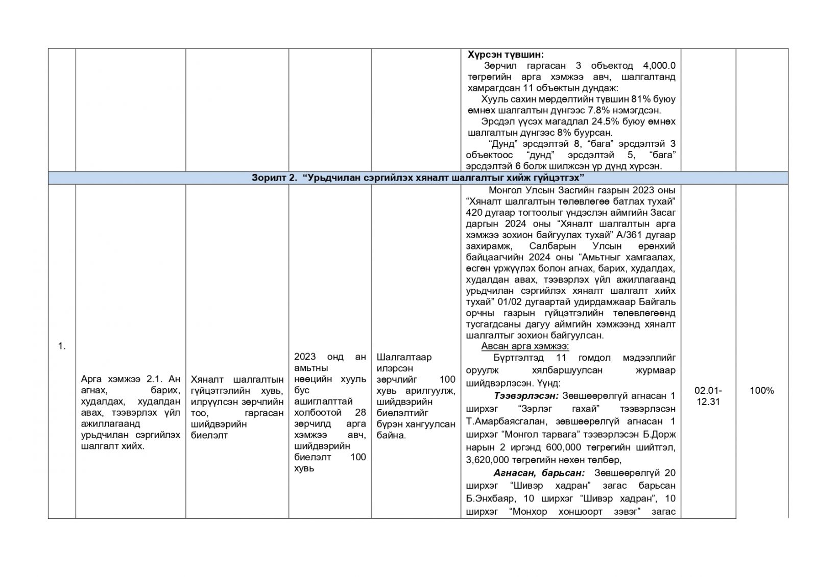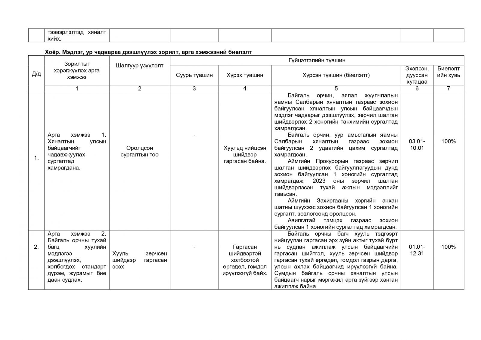 Байгаль орчны хяналтын улсын байцаагч Б.Золбаярын 2024 оны гүйцэтгэлийн тайлан