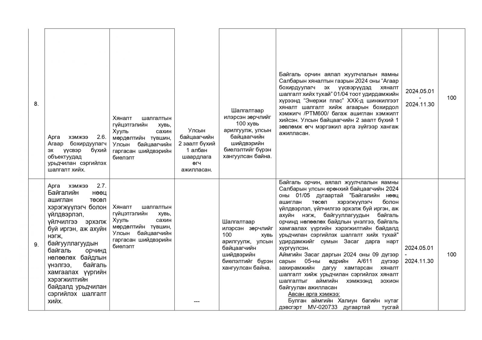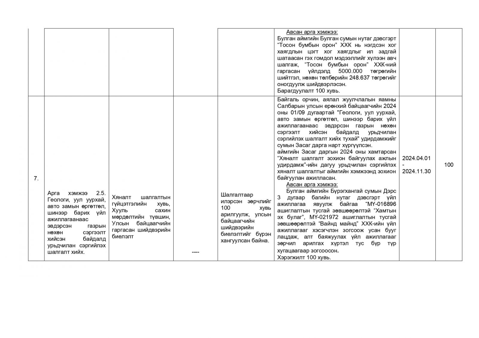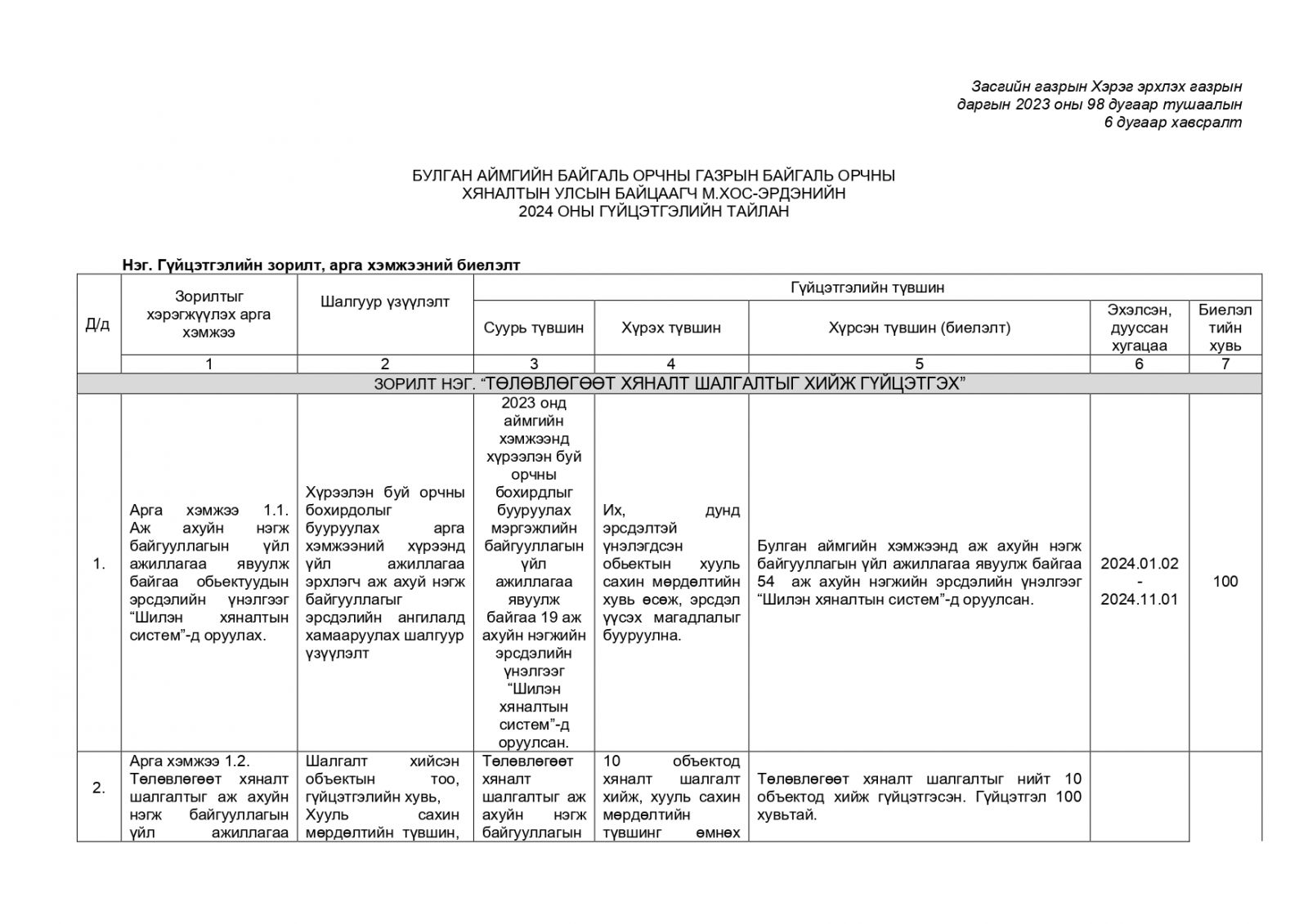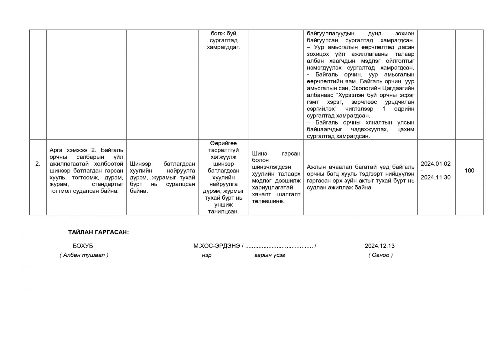 Байгаль орчны хяналтын улсын байцаагч М.Хос-Эрдэнийн 2024 оны гүйцэтгэлийн тайлан