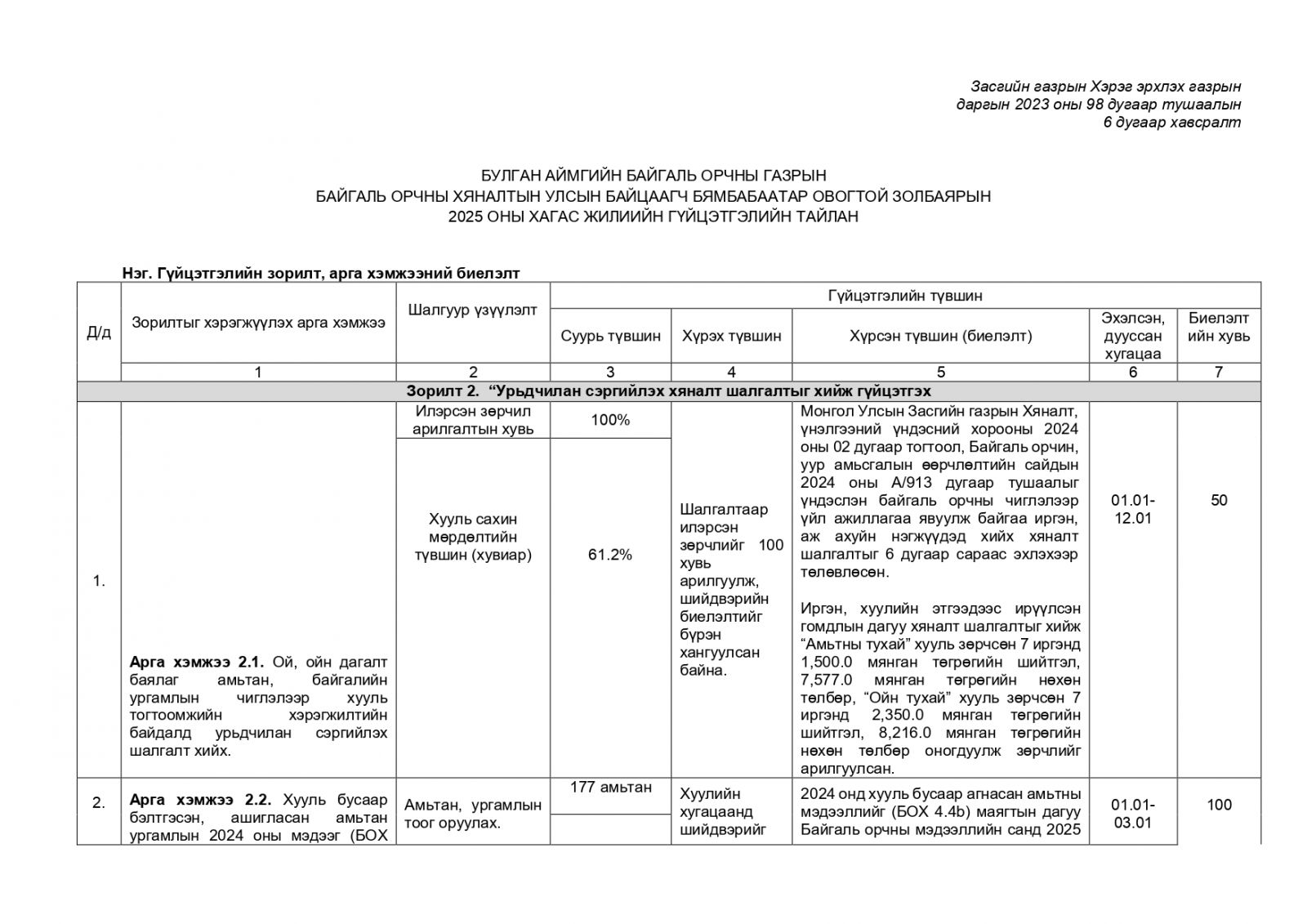 БОХУБ Б.Золбаярын 2025 оны хагас жилийн гүйцэтгэлийн тайлан