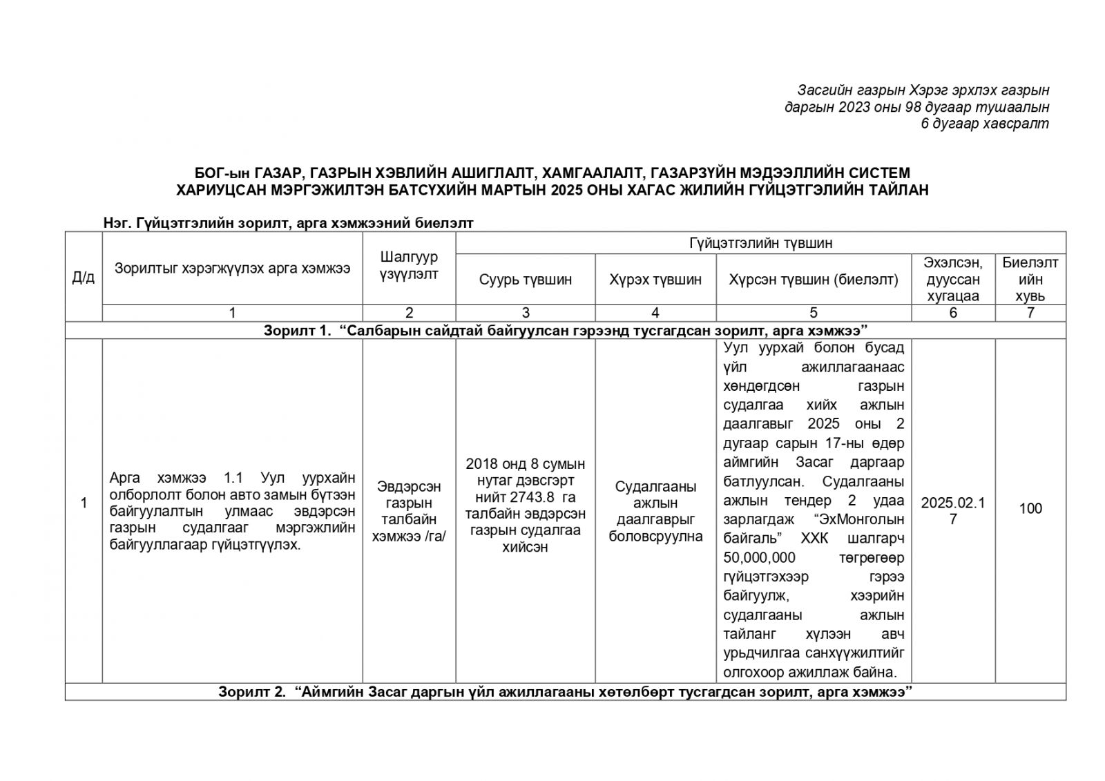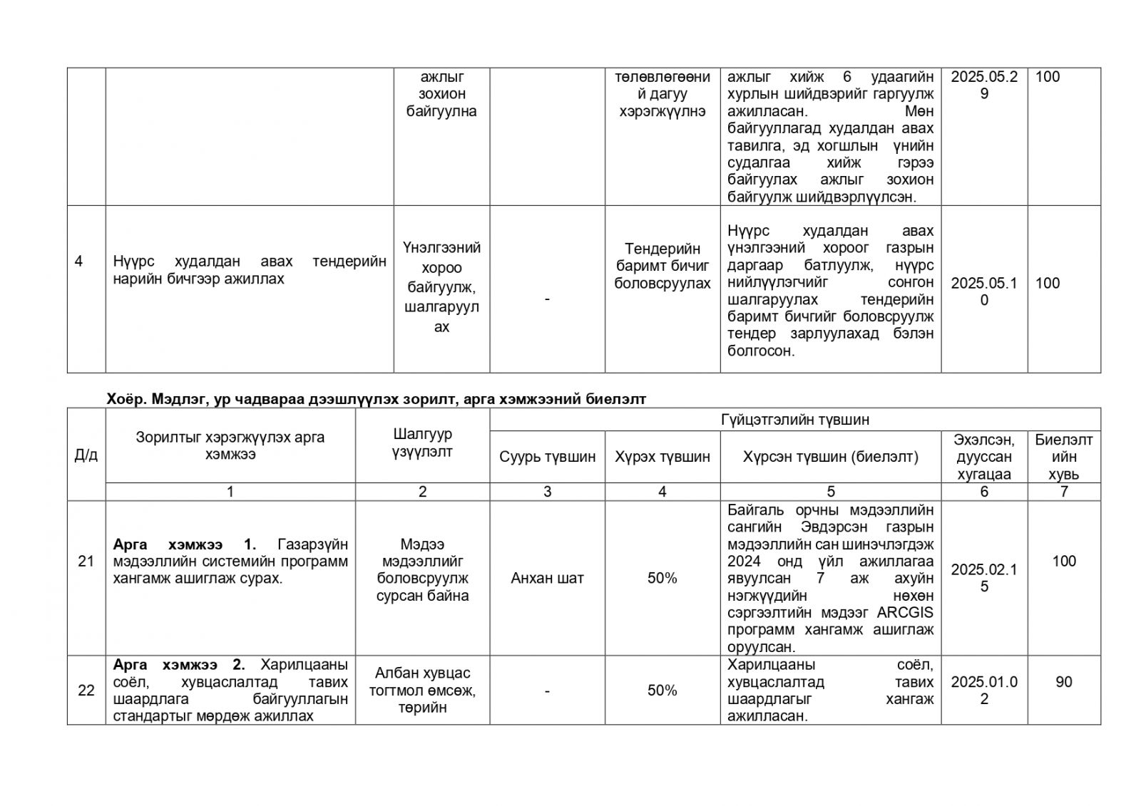 Мэргэжилтэн Б.Мартын 2025 оны хагас жилийн гүйцэтгэлийн тайлан