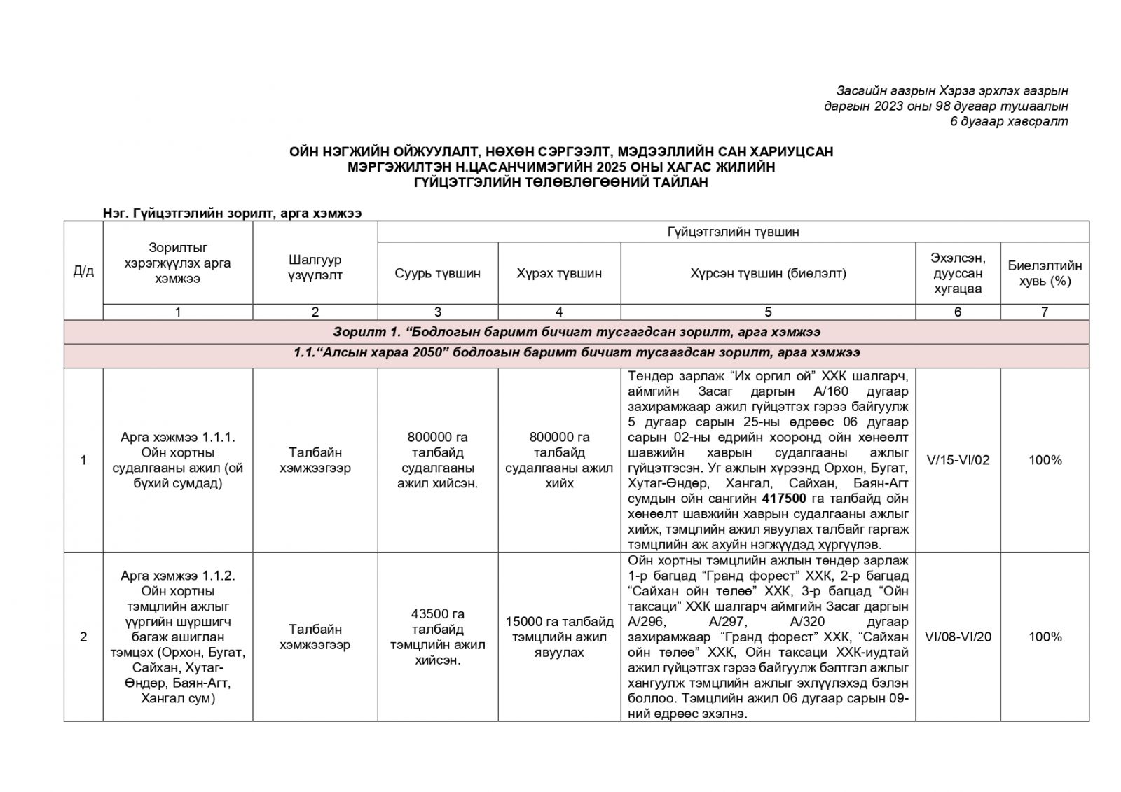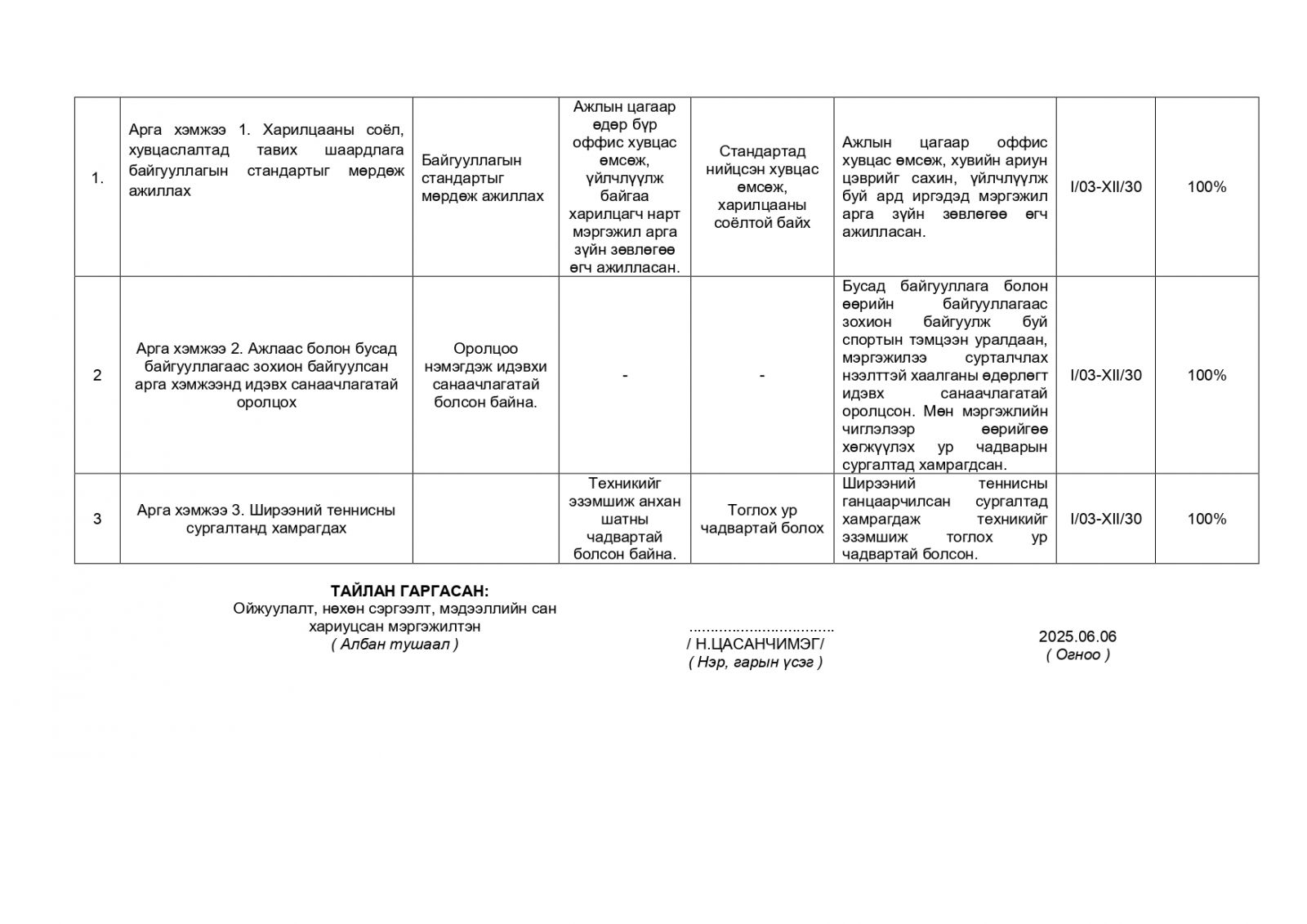 Ахлах мэргэжилтэн Н.Цасанчимэгийн 2025 оны хагас жилийн гүйцэтгэлийн тайлан